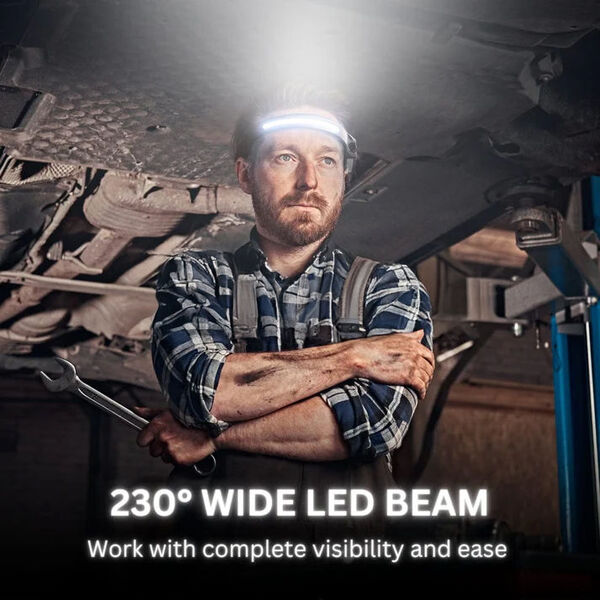 Erhelle deinen gesamten Arbeitsbereich mit einem 230° Weitwinkelstrahl. Diese Stirnlampe bietet helle, klare Sicht in alle Richtungen und ist ideal für drinnen und draußen.